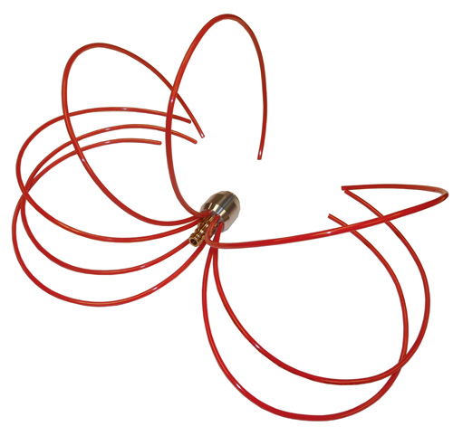 Hurricane Reverse Spider Whip. The Hurricane Reverse Spider Whip has eight tentacles and can be used in reverse direction. The Hurricane Spider Whip has a better coverage rate than a single or triple whip, but less aggressive whipping action. This tool is ideal for cleaning trunk lines or main ducts. It is recommended to use 2-1/2″ hole saw and duct plug for access openings. Use a Hurricane Line (CAS148/CAS149) or compatible to interface this item with 1/4″ standard interchange airline fittings.