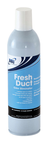 BBJ FreshDuct 14 oz. Aerosol Deodorizer. FreshDuct contains BBJ EnviroGard™, an encapsulation control agent that controls odors by both encapsulating and breaking down odor molecules, while time releasing a fresh fragrance. BBJ FreshDuct Odor Eliminator leaves the air fresh and clean. Our duct cleaning products are formulated with non-toxic and readily biodegradable ingredients meaning there is no need to evacuate the premises during application. Download MSDS