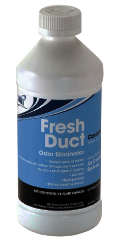 BBJ FreshDuct Deodorizer Concentrate. FreshDuct contains BBJ EnviroGard™, an encapsulation control agent that controls odors by both encapsulating and breaking down odor molecules, while time releasing a fresh fragrance. BBJ FreshDuct Odor Eliminator leaves the air fresh and clean. Our duct cleaning products are formulated with non-toxic and readily biodegradable ingredients meaning there is no need to evacuate the premises during application. This container can mix up to 5 gallons of RTU deodorizer. Download MSDS