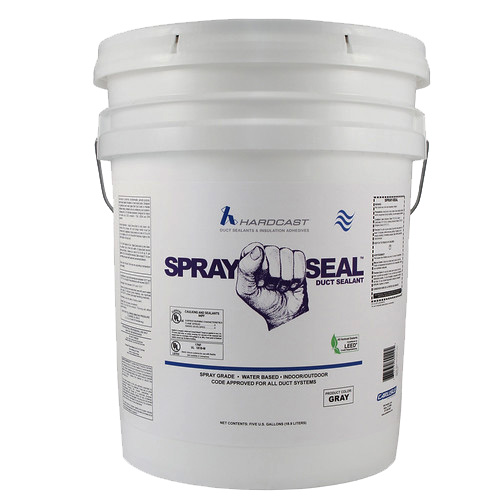 Hardcast Spray Seal, 5 Gal. Spray-Seal is an all-purpose high performance sprayable sealant for use on all types of metal duct, ?berglass duct board, duct fabric and ?ex duct. Distinguished by its ability to accommodate minor vibration and movement, Spray-Seal stays ?exible and will not crack. Spray-Seal decreases labor substantially and increases productivity while using less material. 10 Year Outdoor Warranty when combined with an AFT-701 combination system.