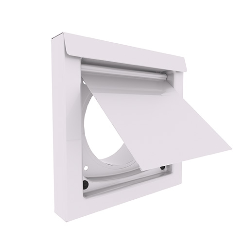 Dryer Wall Vent, White. The low profile DryerWallVent is a superior, safer choice for venting dryer exhaust to the exterior. The DryerWallVent’s large opening and angled damper provide maximum airflow efficiciency for safe venting of the dryer. Integrated magnets keep the damper closed when the dryer is not in use, keeping pests and elements on the outside. The larger vent opening makes cleaning and maintenance very accessible. Made in the USA from heavy 26 gauge Galvalume Steel.