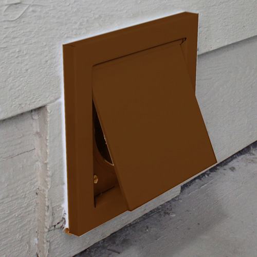Dryer Wall Vent, Brown. The low profile DryerWallVent is a superior, safer choice for venting dryer exhaust to the exterior. The DryerWallVent’s large opening and angled damper provide maximum airflow efficiciency for safe venting of the dryer. Integrated magnets keep the damper closed when the dryer is not in use, keeping pests and elements on the outside. The larger vent opening makes cleaning and maintenance very accessible. Made in the USA from heavy 26 gauge Galvalume Steel.