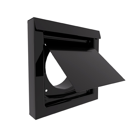 Dryer Wall Vent, Black. The low profile DryerWallVent is a superior, safer choice for venting dryer exhaust to the exterior. The DryerWallVent’s large opening and angled damper provide maximum airflow efficiciency for safe venting of the dryer. Integrated magnets keep the damper closed when the dryer is not in use, keeping pests and elements on the outside. The larger vent opening makes cleaning and maintenance very accessible. Made in the USA from heavy 26 gauge Galvalume Steel.