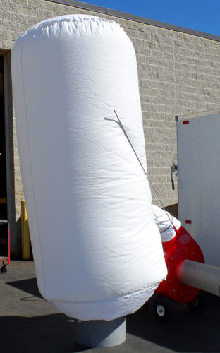 Ranger Filter Bag. 4′ diameter x 10′ tall washable cloth filter bag. Sits atop dust collection bucket (not included), and stabilizes with guide rods (not included). AKA: Oversize General Bag
