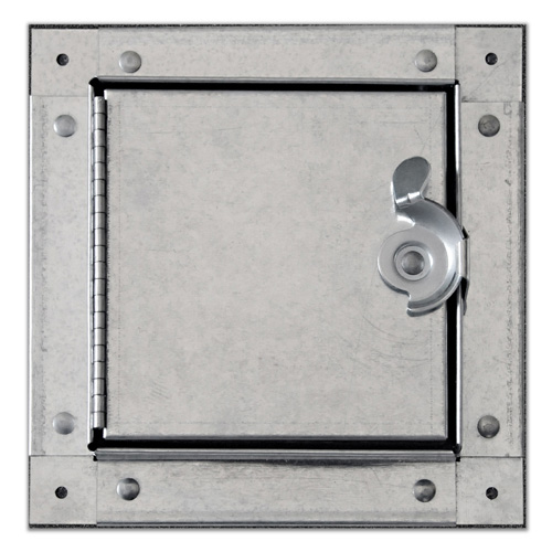 Hinged Access Door for Sheet Metal Duct Work. 16″ x 16″ Hinged Door is Secured with 2 Cam-Locks. Pressure Sensitive Adhesive flange for easy installation.